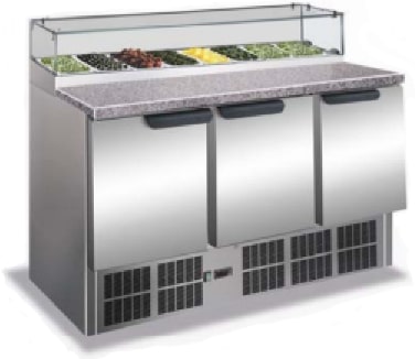 מקרר דלפק שלוש דלתות מנוע תחתון + סלטיה עליונה + שיש