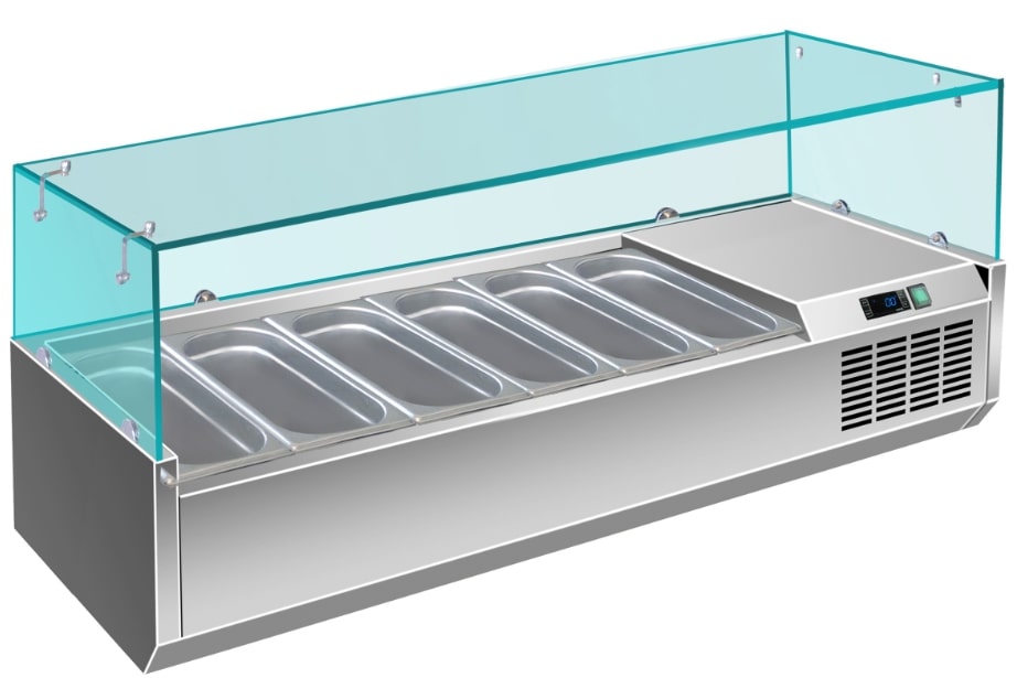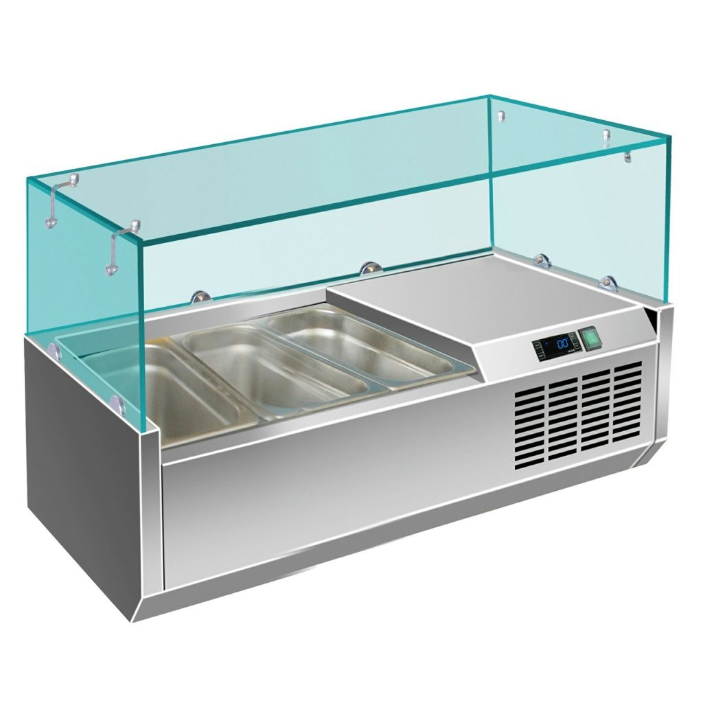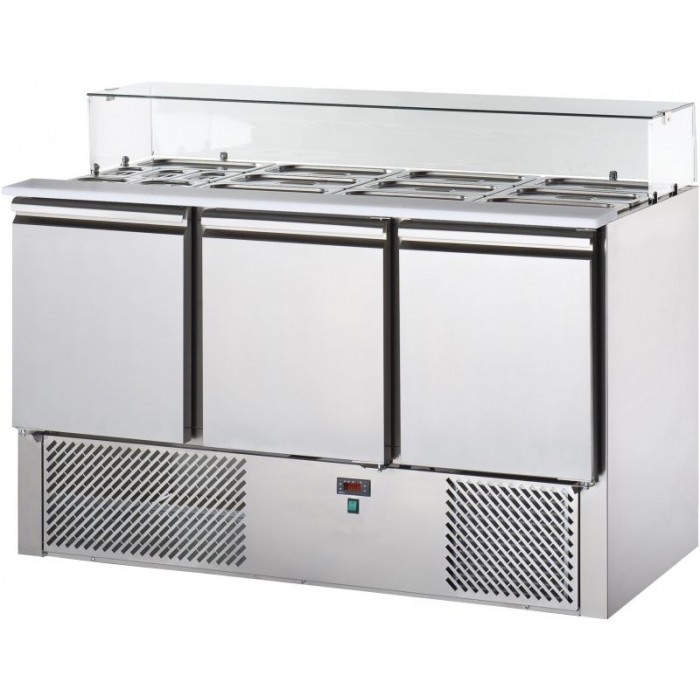 מקרר דלפק שלוש דלתות עם סלטייה + וטרינת זכוכית