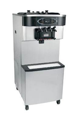 מכונת גלידה רכה בעלת שני ברזי גלידה בהספק של 340 מנות לשעה מכל ברז